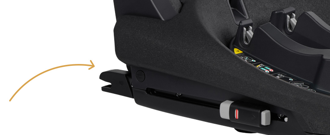 Un asa en la abrazadera delantera de la base permite ajustar el espacio para las piernas de los niños mayores inclinando la abrazadera delantera.